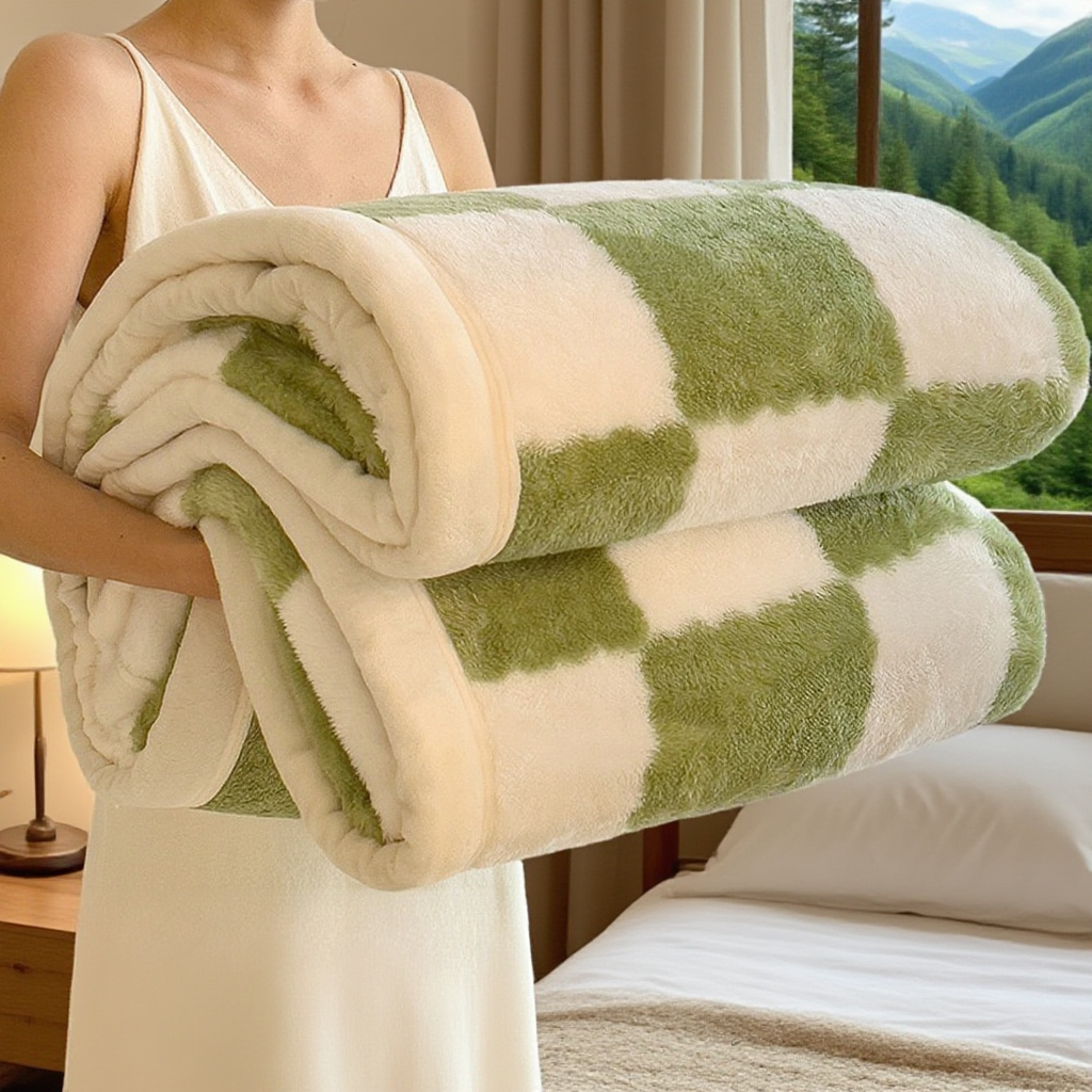 Grid double-sided plush thick blanket